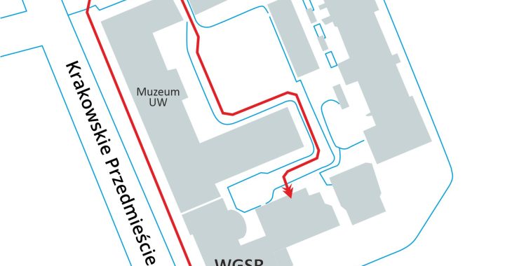 W okresie wakacji do budynku WGSR można wejść wyłącznie od wewnętrznego dziedzińca – bramą od strony Kościoła Wizytek.