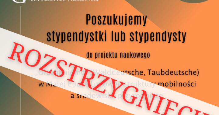 W projekcie pt.: „Głuchoniemcy (Walddeutsche, Taubdeutsche) w Małej Epoce Lodowej: struktury mobilności a środowisko przyrodnicze”, finansowanym przez Narodowe Centrum Nauki w ramach konkursu OPUS 27 (nr projektu: UMO-2024/53/B/HS3/00890) rozstrzygnięte zostały dwa konkursy na stanowisko stypendysty w projekcie.